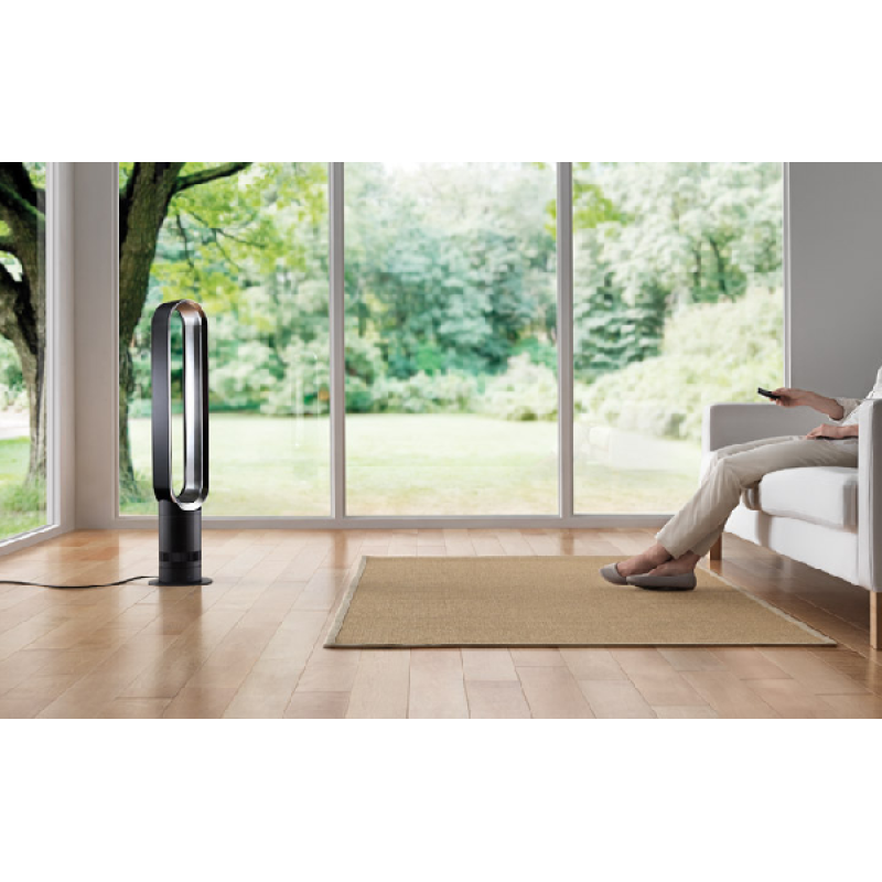 Een ringvormige luchtstroom versnelt de omringende lucht en versterkt deze. Er zijn geen bladen die in de lucht hakken, zodat een gladde luchtstroom koelt zonder onaangename trillingen.