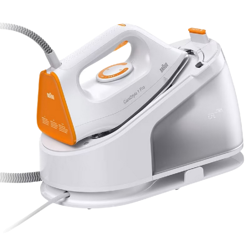 Met de CareStyle 1 Pro stoomgenerator van Braun Household met zijn oranje accenten, verdwijnt je stapel wasgoed als sneeuw voor de zon. Het apparaat is compact en krachtig, makkelijk op te bergen en zeer wendbaar in gebruik. Het is uitgerust met een reservoir van 1,7 liter zodat je gemakkelijk en zonder onderbreking je stapel wasgoed kunt strijken. Dankzij een groot aantal handige functies, zoals een snelle opwarmtijd, een aanpasbare stoomafgifte tussen 110 en 360 g/min en verticaal gebruik kun je snel en efficiënt strijken. Het strijkijzer is uitgerust met een 3D FreeGlide-keramische zoolplaat en DoubleSteam-technologie, die een soepele glijbeweging over alle stoffen en een gelijkmatige stoomverdeling in de kern van de vezels garandeert. Je bent in een mum van tijd van die hardnekkige kreuken af. Met dit krachtige stoomstrijkijzer wordt strijken een plezier.