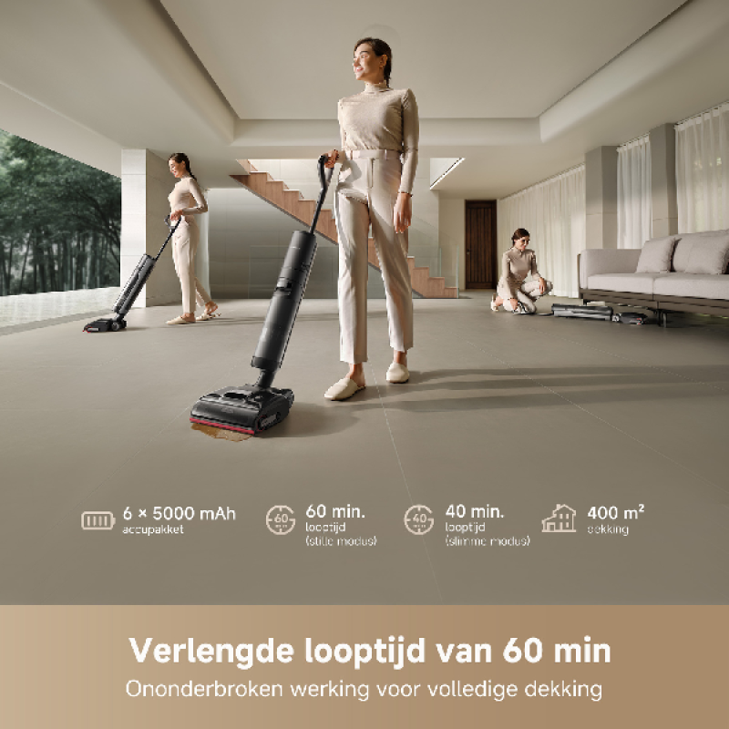 De Dreame H15 PRO Wet and Dry bereikt moeiteloos zelfs de lastigste plekken in huis. Dankzij de GapFree AI DescendReach-robotarm glijdt hij onder meubels, banken en lage kasten om overal grondig te reinigen. Het 3-voudige Triple-Edge Cleaning-reinigingssysteem pakt vuil, stof en vlekken efficiënt aan en zorgt dat ook randen en hoeken niet worden overgeslagen. Daarnaast hou je de borstel eenvoudig schoon: de TangleCut Elastic Scraper scheidt lange en korte haren probleemloos, zodat verstoppingen verleden tijd zijn.