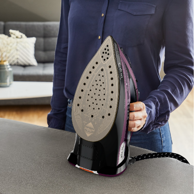 Het mauve Ultimate Pure stoomstrijkijzer van Calor is licht en krachtig. Het strijkijzer is voorzien van een krasbestendige strijkzool die het beste glijvermogen garandeert, om moeiteloos snel te strijken.