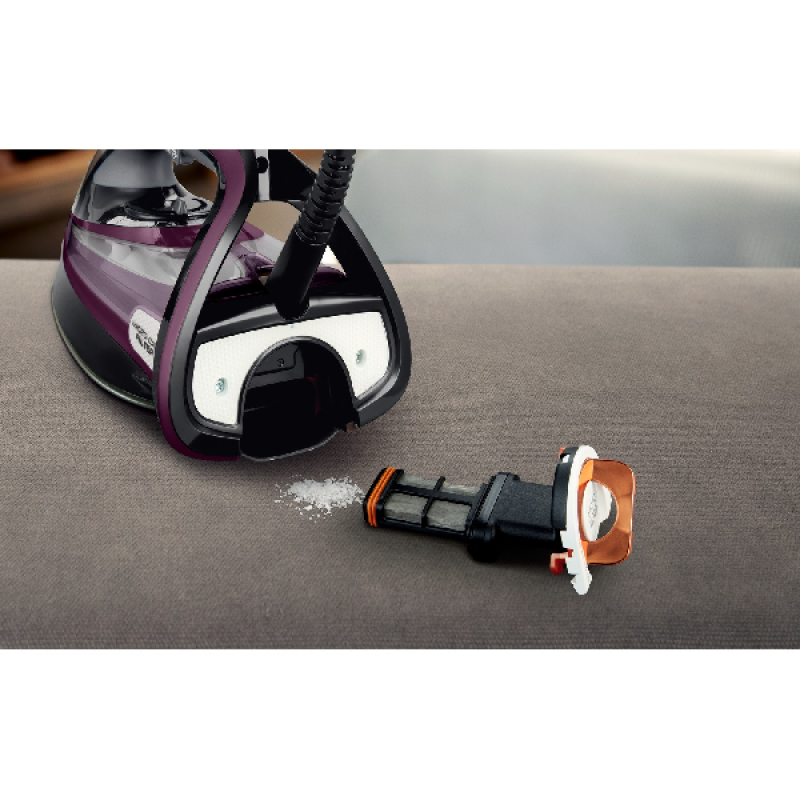 Calor raadt aan gedemineraliseerd water te gebruiken om dit strijkijzer optimaal te laten werken. Als je echter kraantjeswater gebruikt, zorgt het Micro-Calc 2-in-1-filter dat de stoom die vrijkomt 100% gefilterd is, om kalkvlekken op je kleding te voorkomen. Het filter houdt kalkdeeltjes groter dan 0,2 mm tegen en vangt ze op in een klein compartiment aan de achterkant van het apparaat. Het strijkijzer geeft aan wanneer je het filter moet legen. Met deze innovatieve filter bescherm je je kleding door schone, zuivere stoom af te geven en verleng je de levensduur van je strijkijzer.