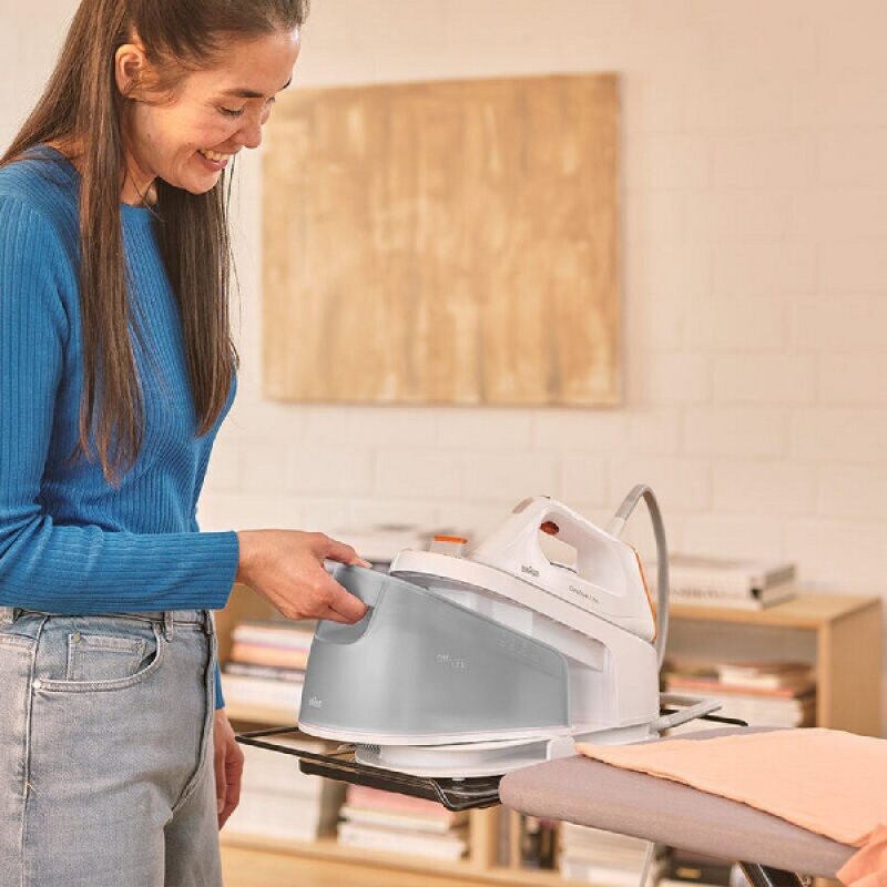 Met de CareStyle 1 Pro stoomgenerator van Braun Household met zijn oranje accenten, verdwijnt je stapel wasgoed als sneeuw voor de zon. Het apparaat is compact en krachtig, makkelijk op te bergen en zeer wendbaar in gebruik. Het is uitgerust met een reservoir van 1,7 liter zodat je gemakkelijk en zonder onderbreking je stapel wasgoed kunt strijken. Dankzij een groot aantal handige functies, zoals een snelle opwarmtijd, een aanpasbare stoomafgifte tussen 110 en 360 g/min en verticaal gebruik kun je snel en efficiënt strijken. Het strijkijzer is uitgerust met een 3D FreeGlide-keramische zoolplaat en DoubleSteam-technologie, die een soepele glijbeweging over alle stoffen en een gelijkmatige stoomverdeling in de kern van de vezels garandeert. Je bent in een mum van tijd van die hardnekkige kreuken af. Met dit krachtige stoomstrijkijzer wordt strijken een plezier.