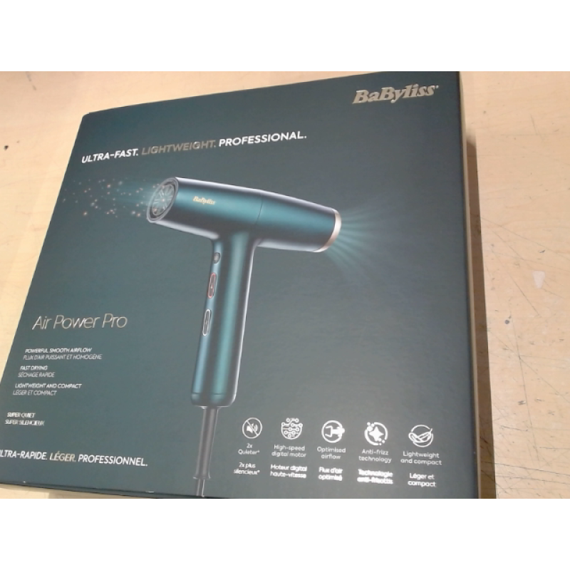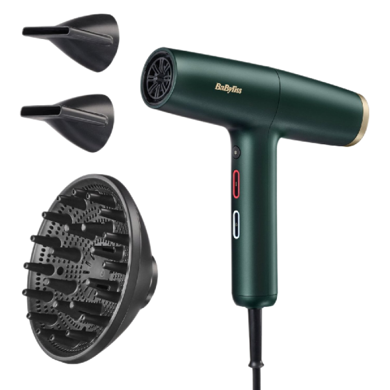 De groene Air Power Pro haardroger van Babyliss is een krachtig apparaat dat je haar snel droogt zonder het te beschadigen. De Air Power Pro heeft een opvallend ultra-modern ontwerp en een snelle digitale motor en is een juweeltje van technologie. Het wordt geleverd met een fijne blaasmond voor lang haar, een blaasmond voor krullend en golvend haar en een brede diffuser. Met zijn antikroes-technologie, 1700 watt vermogen, 4 temperatuurinstellingen en 3 ventilatorinstellingen droog je je haar in een handomdraai.