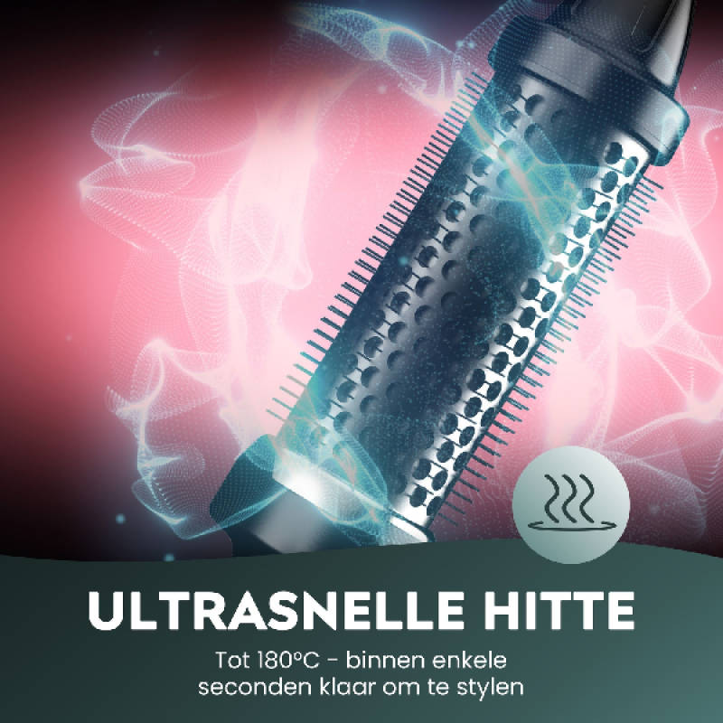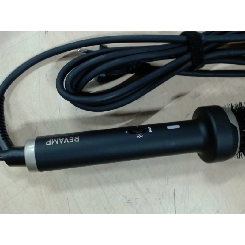 De zwarte Progloss Big Round Brush BR1400A blaasborstel van Revamp droogt en stijlt je haar in een handomdraai. Deze ronde borstel verwarmt van 0 tot 180° met 800 watt vermogen om je manen zachtjes te drogen. Om je haar gezond te houden heeft de borstel een keramische body die de warmte gelijkmatiger verdeelt en verrijkt met keratine-, argan- en kokosolie. De borstel is ook voorzien van ionische technologie om pluizen en het risico op haarbreuk te verminderen. De borstel werkt op netstroom en met het lange netsnoer van 3 meter word je niet gehinderd in je bewegingen. Met zijn cilindrische vorm en vederlichte gewicht van 416 gram is hij comfortabel in gebruik en kun je volumineuze, salonwaardige stijlen creëren, terwijl je goed voor je haar zorgt.