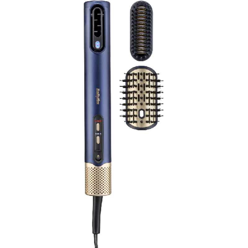 Met deze blauwe Air Wand 3-in-1 haardroger van BaByliss droog, steil en krul je je haar in een handomdraai. Dit ergonomische model is compact en licht, weegt slechts 380 gram en ligt prettig in de hand. Het 2,5 m lange snoer biedt je veel bewegingsvrijheid. De AirWand heeft 1500 watt vermogen en 4 temperatuur- en 3 ventilatorstanden waardoor je haar snel droog is. Dankzij de 2 meegeleverde afneembare opzetstukken kan je je kapsel aanpassen aan je stemming.