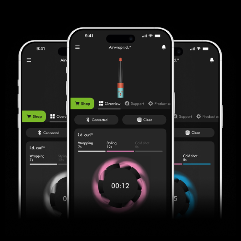 Een van de grote voordelen van de Airwrap I.D. is zijn intelligentie en connectiviteit met de MyDyson-app. Nadat je je haarprofiel in de app hebt ingesteld, krijg je namelijk gepersonaliseerd advies en past het apparaat automatisch zijn instellingen op basis van het gebruikte opzetstuk en het gewenste kapsel aan. Dankzij het intuïtieve scherm en de knoppen kun je met een simpele druk op de knop de modus, temperatuur en kracht regelen. Naast stylingadvies afgestemd op je haartextuur en stapsgewijze stylinginstructies, stuurt de app je ook onderhoudsmeldingen om je apparaat goed te verzorgen.