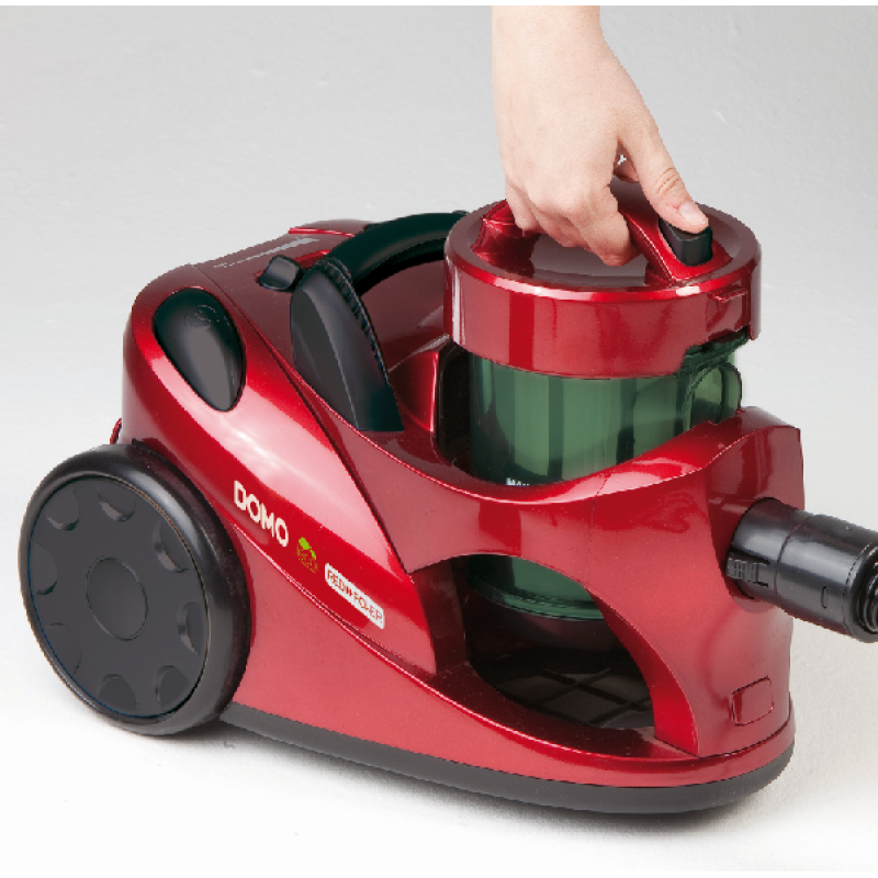 De rode DO7279S stofzuiger zonder stofzak van DOMO is compact, krachtig en licht. Hij is gemakkelijk te hanteren en met zijn actieradius van 8 meter komt hij overal achter je aan in huis.