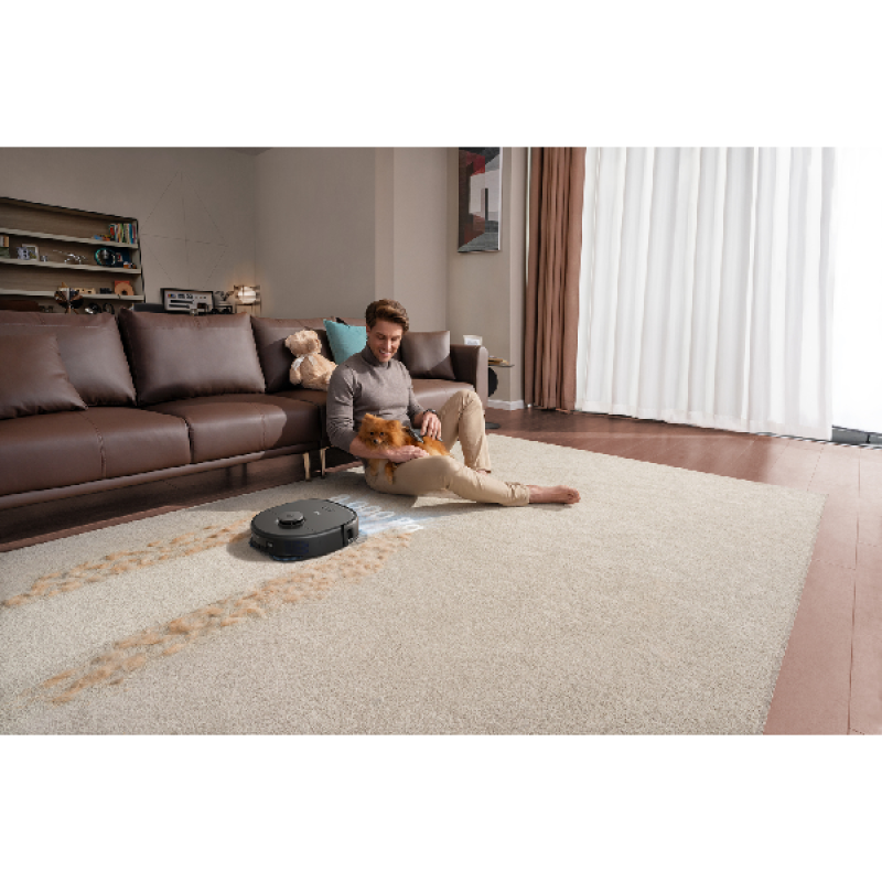 Met 180 rotaties per minuut en een drukkracht van 1 kilo zorgt deze robotstofzuiger steeds voor een blinkende vloer. En wanneer hij op een tapijt rijdt, weet hij dat hier niet gedweild hoeft te worden. Hij tilt zijn dweilen dus op om te voorkomen dat je vochtige plekken krijgt op je vloerbedekking. Verder loopt het toestel geen risico om geblokkeerd te geraken door bijvoorbeeld haren van huisdieren. Dankzij de ingebouwde kam worden die namelijk direct van de borstel verwijderd, zodat de stofzuiger niet verstopt geraakt.