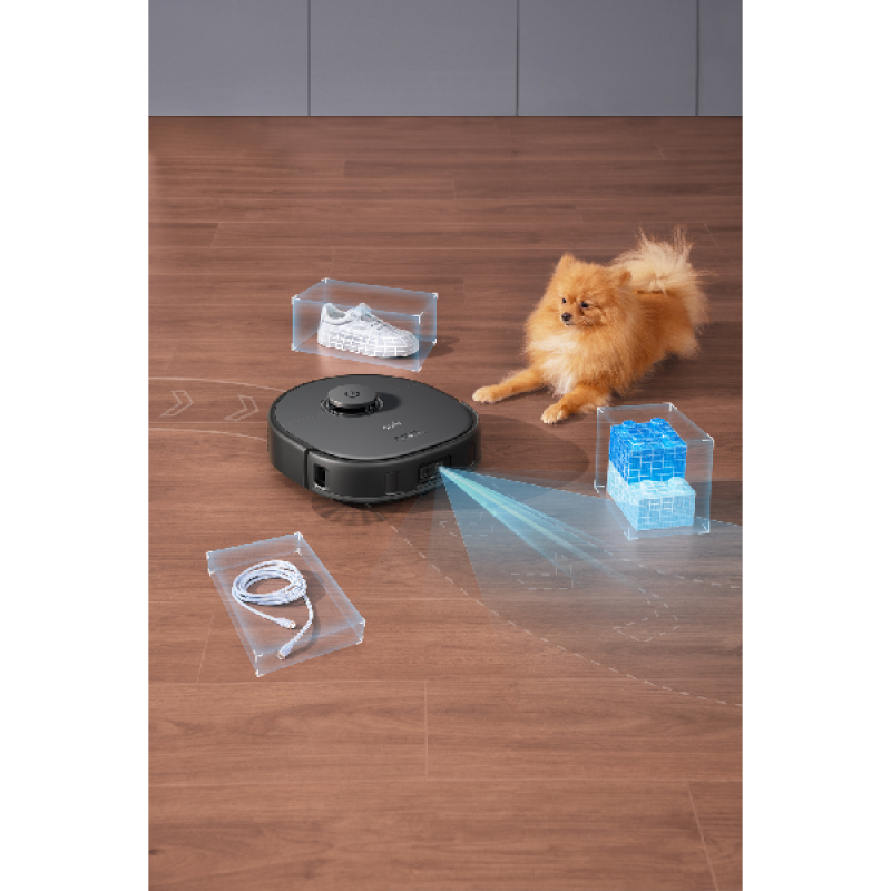 Om te voorkomen dat de robotstofzuiger losliggende kabels door je huiskamer verspreidt, heeft Eufy hem uitgerust met AI.See. Dankzij deze slimme functie weet hij wanneer er obstakels in zijn weg liggen. Dit kan gaan om speelgoed of je schoenen, maar ook kabels. Hier wordt vervolgens omheen gezogen en gedweild, zodat alles nog op de plek ligt waar je het hebt achtergelaten. Daarnaast wordt alle data over je huis en obstakels lokaal opgeslagen en niet op het internet, waardoor jouw gegevens helemaal beveiligd zijn.