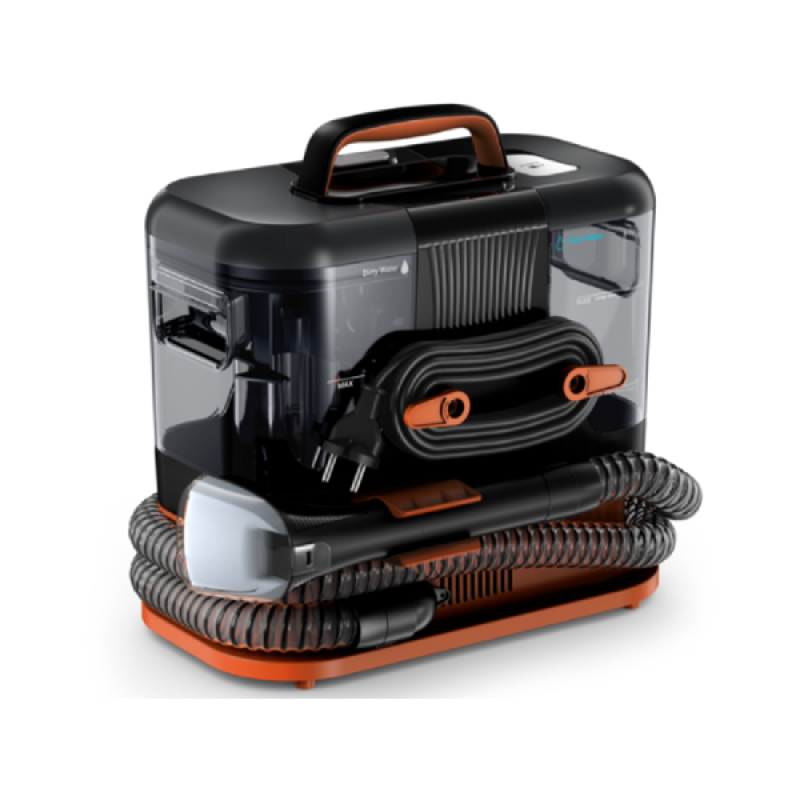 Geen hardnekkige vlek zal deze zwart met oranje accenten Clean-It stofzuiger van Rowenta weerstaan. Deze compacte apparaat weegt slechts 4,8 kilo en dankzij de ergonomische handgreep is hij gemakkelijk te verplaatsen. Hij heeft een afneembare watertank van 1,8 liter en een stofreservoir van 1,5 liter. Hij heeft een vermogen van 400 watt en verwijdert in een handomdraai alle vlekken uit tapijt en bekleding. Met de meegeleverde praktische hulpstukken, waaronder een 8 cm borstel, een 15 cm borstel en een spleetzuigmond, kun je alle soorten vlekken elimineren. De flexibele zuigbuis met de combinatiemondstuk en het netsnoer ruim je netjes om het apparaat heen voor handig opbergen. Tot slot biedt Rowenta een reparatiegarantie van 15 jaar op deze vloerreiniger.