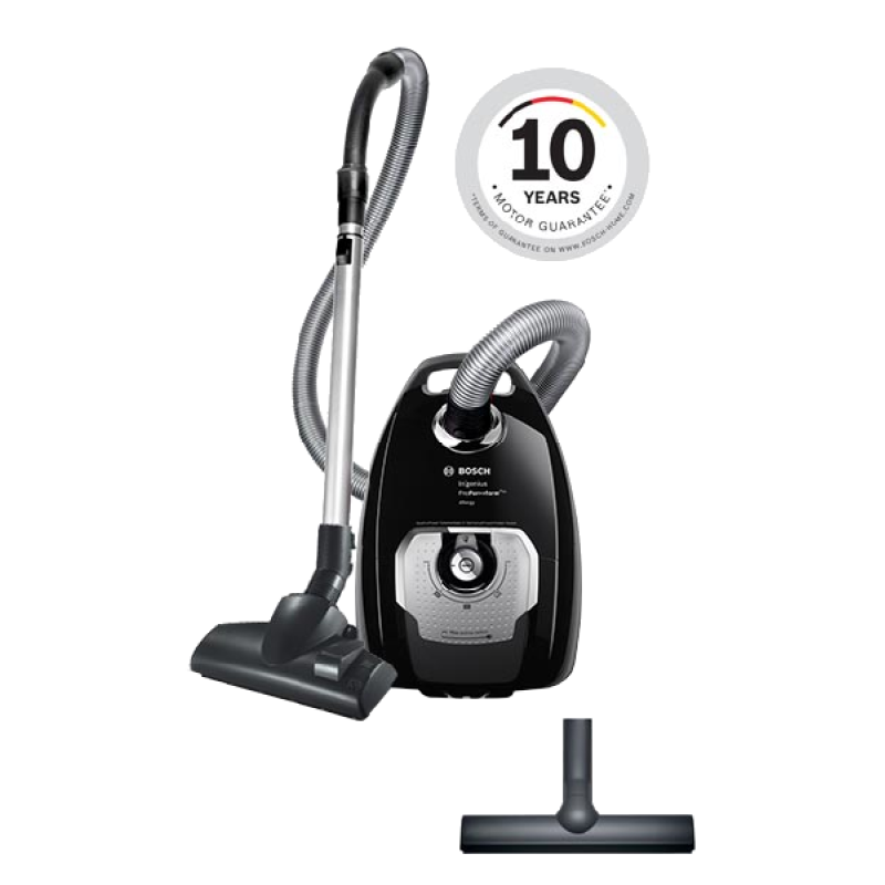 De zwarte In'genius ProPerformPlus 8-serie stofzuiger van BOSCH is de krachtigste en energiezuinigste stofzuiger uit het assortiment. Dit model is uitgerust met een krachtige motor die op alle oppervlakken een optimale zuigkracht garandeert met een minimaal elektriciteitsverbruik. Dankzij het geavanceerde filtratiesysteem zuivert hij zelfs de omgevingslucht voor meer comfort.