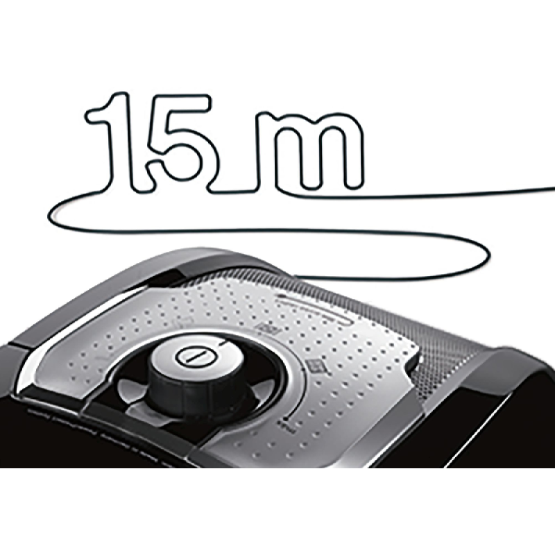 Deze stofzuiger heeft een simpel, modern ontwerp en is uitgerust met zachte wielen waarmee hij met gemak in alle richtingen door je huis beweegt. Met zijn compacte formaat, lichte gewicht van 5,5 kilo en aansluitkabel van 12 meter neem je hem gemakkelijk mee van de ene kamer naar de andere. Dankzij zijn actieradius van 15 meter kan je je hele huis schoonmaken zonder de stekker uit het stopcontact te hoeven halen. Wanneer je klaar bent met stofzuigen, rolt het snoer zich automatisch op en verdwijnt deze in de stofzuiger. Tot slot is hij voorzien van een stijlvolle textielslang die ultraflexibel en ultrabestendig is, zodat je hem in elke richting kan draaien zonder hem te beschadigen.