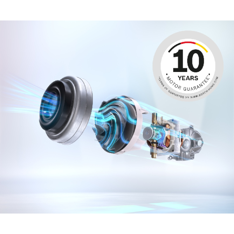 Bosch heeft deze stofzuiger uitgerust met een krachtige motor van Duitse kwaliteit met 10 jaar garantie. Met 750 watt vermogen verwijdert hij de kleinste kruimels, stof en huismijt van alle vloeren, meubels en zetels die je schoonmaakt. Bovendien levert de QuattroPower-technologie indrukwekkende resultaten terwijl het energieverbruik tot een absoluut minimum wordt beperkt. Met een energieverbruik van 28 kWh per jaar heeft deze Bosch stofzuiger een energielabel A. Voorts blijven de zuigprestaties dankzij het PowerProtect-systeem optimaal, zelfs als de 3,5-liter stofzak vol is. Tot slot is dit apparaat voorzien van een dubbel HEPA H13-filtratiesysteem dat de lucht zuivert voor meer comfort. Het hygiënische filter is wasbaar, waardoor de onderhoudskosten laag blijven
