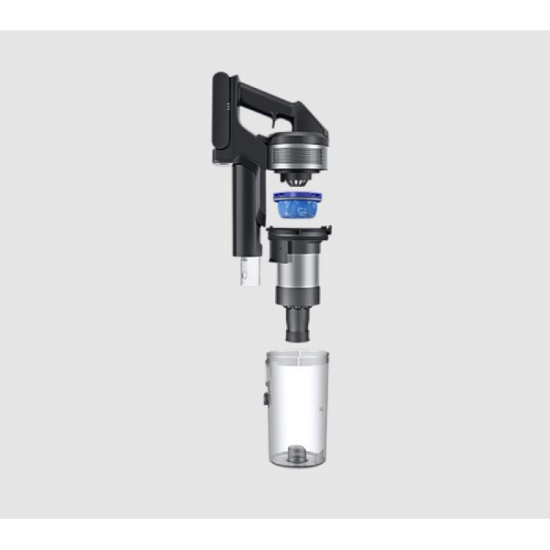 Deze stijlvolle zilverkleurige Jet 75E Pet Stick steelstofzuiger van Samsung verenigt esthetiek met prestaties. Zoals de naam al doet vermoeden, is hij speciaal ontworpen voor huisdiereigenaren en combineert krachtige zuigkracht met een licht gewicht, waardoor dit toestel zowel efficiënt als prettig in gebruik is.