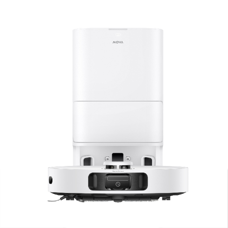 Het alles-in-één basisstation van de MOVA E40 Ultra automatiseert meerdere onderhoudstaken. Het station reinigt en droogt de dweilpads met warme lucht, wat helpt om vocht en geurtjes te beperken. De automatische lediging werkt met een 3,2 liter stofzak, waarmee je tot 75 dagen geen stof hoeft te legen. In de robot zit een waterreservoir van 80 ml met 3 instelbare vochtigheidsniveaus, zodat je de dweilfunctie afstemt op verschillende vloertypen en mate van vervuiling.
