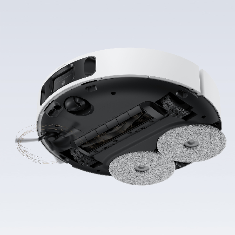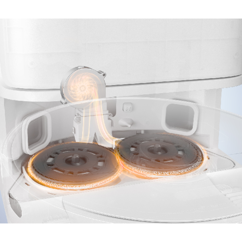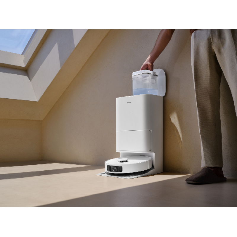 (+) Automatisch onderhoud: het alles-in-één basisstation leegt het stofreservoir automatisch en reinigt de dweilpads na gebruik.