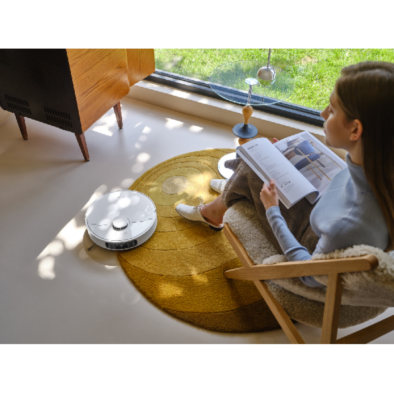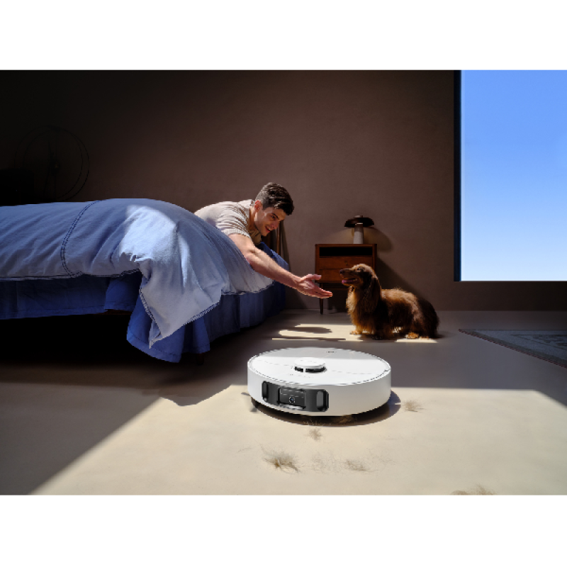 De MOVA E40 Ultra beschikt over MaxiReach-technologie, waarbij de dweil automatisch tot 4 cm uitschuift om randen en moeilijk bereikbare plekken beter te reinigen. Hierdoor pakt de robot ook zones langs plinten en onder lage meubels mee. De anti-verstrikkingszijborstel met een 45° rubberen strip vermindert het vastlopen van haren, wat praktisch is in huishoudens met huisdieren. De robot herkent vervuilde zones en stemt zijn schoonmaakroute hierop af, zodat vloeren gericht en gecontroleerd worden gereinigd zonder onnodige herhaling.