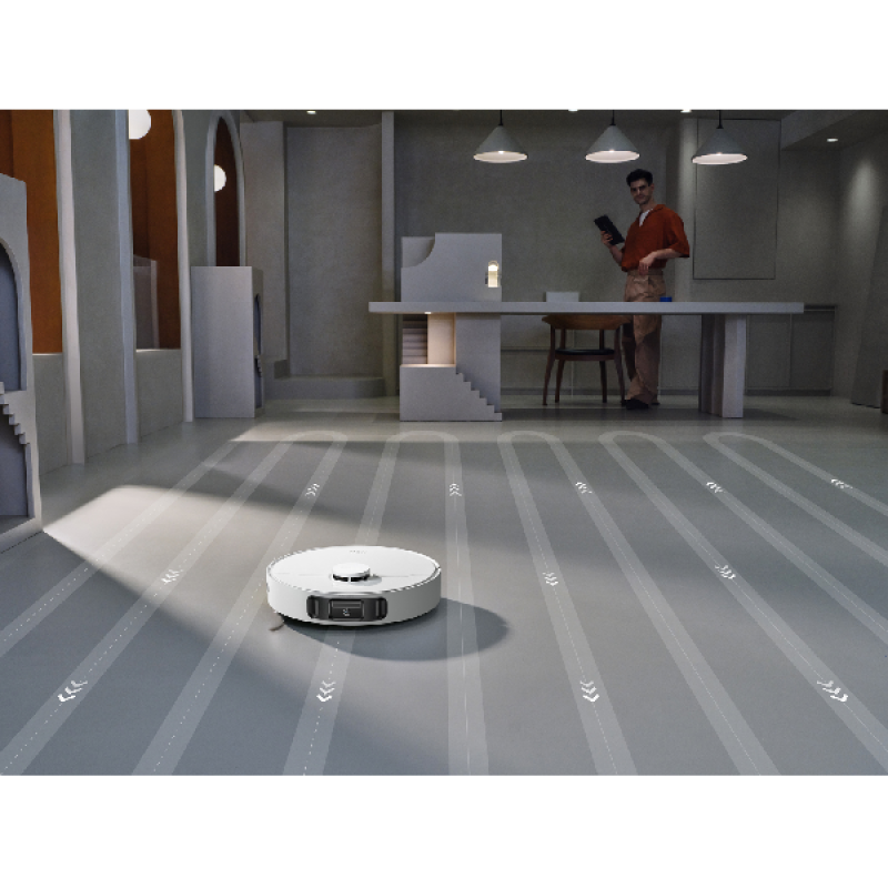 Met een TurboForce 6-motor levert de MOVA E40 Ultra een zuigkracht tot 19.000 Pa, geschikt voor harde vloeren en tapijt. De motor draait op 90.000 tpm en ondersteunt een consistente opname van stof en vuil. De ingebouwde 5.200 mAh-accu maakt een gebruiksduur tot 260 minuten mogelijk, wat voldoende is voor oppervlakken tot 220 m² per laadbeurt. Dankzij deze combinatie van vermogen en accucapaciteit reinigt de robot grotere woonruimtes zonder tussentijds opladen.