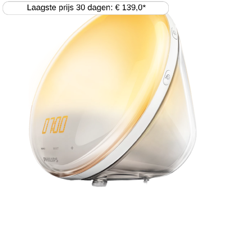 De Philips Wake-up Light lichtwekker in witte uitvoering laat zich inspireren door de zonsopgang en zorgt dat je op natuurlijke wijze ontwaakt. Hij laat je geleidelijk ontwaken met natuurlijk licht en rustgevende geluiden, zodat je op een aangename manier wakker wordt. De kleur van het ochtendlicht verandert binnen 30 minuten van zacht morgenrood via warm oranje naar zonnig geel. Je kiest zelf het natuurgeluid dat het beste bij je past uit het volgende aanbod: fluitende dagvogels in het bos, Boeddha, yoga, golven, Nepalese klankschalen, ochtendgeluiden uit de Alpen en een zomermeer. Zo wordt je elke ochtend makkelijker en energieker wakker. Als je graag nog even een uiltje knapt, kun je het geluid bovendien met de snoozeknop elke 9 minuten herhalen.