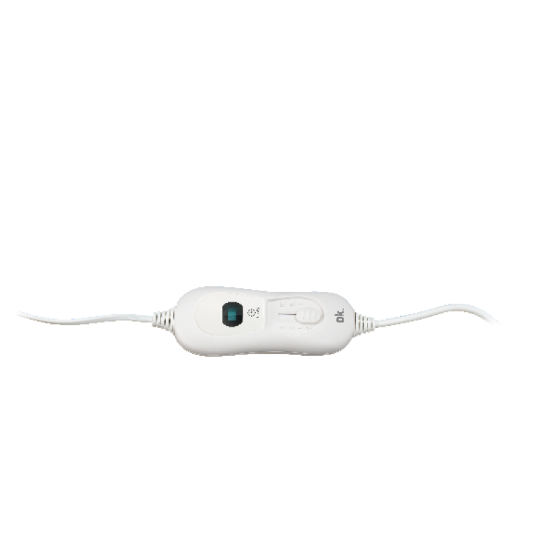 Het witte elektrische deken van OK helpt je warm genoeg krijgen tijdens koude winternachten. Eenmaal je het snoer op de netstroom hebt aangesloten, zal je al snel kunnen genieten van een behaaglijke nachtrust. Met de 3 temperatuursstanden bepaal je zelf wat voor jou de optimale temperatuur is. Wanneer het apparaat in werking is, gaat een indicatielampje branden. Bij oververhitting of wanneer men het vergeet, schakelt het deken zichzelf automatisch uit. Zo kan je steeds rekenen op een zuinig en veilig gebruik. Je hoeft het deken ook niet met de hand te reinigen, het is simpelweg machinewasbaar.