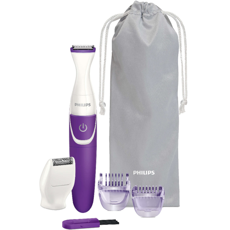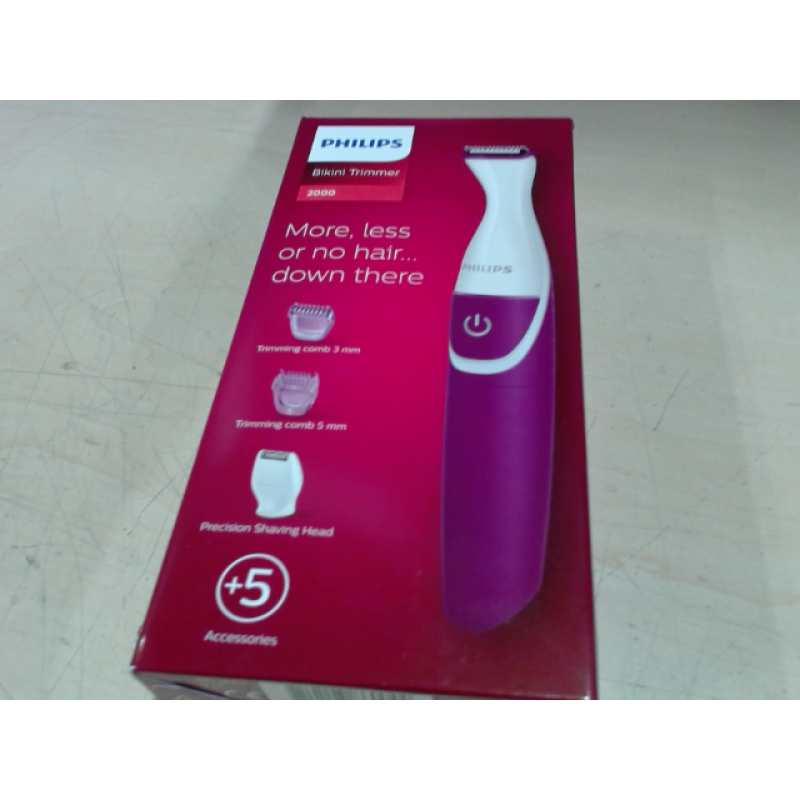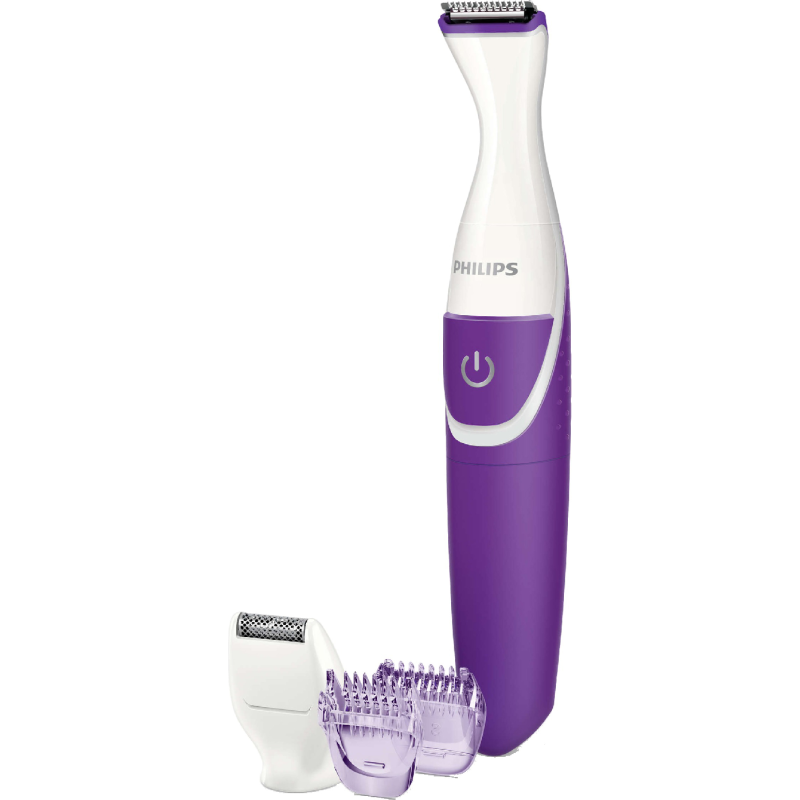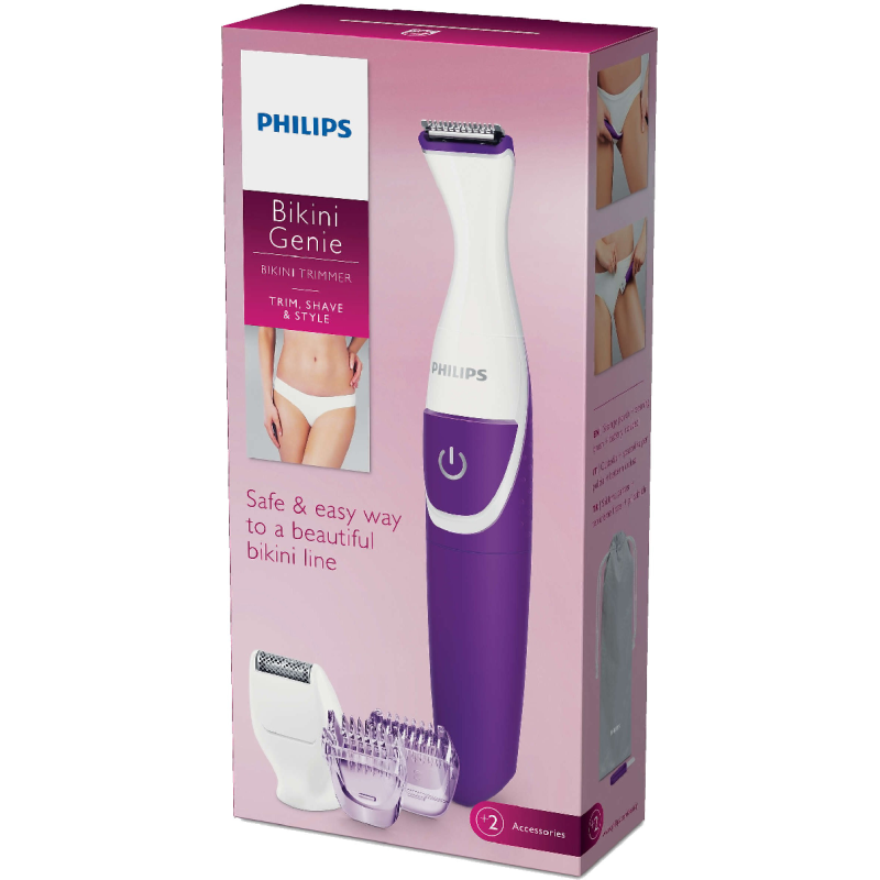 Ontdek de mauve-kleurige BikiniGenie trimmer van Philips en breng je bikinilijn met precisie en delicatesse in vorm. Deze draadloze elektrische bikinitrimmer heeft een flexibele scheerkop met 2 verwisselbare mesjes om haartjes van 3 tot 5 mm te knippen. De bikinitrimmerkop kan ook zonder scheerkop worden gebruikt om nog dichter bij te trimmen, tot 0,5 mm. Je eindigt met het mini-epileerhoofd om de laatste haartjes te verwijderen en een perfect gladde huid te krijgen. De trimmer is eenvoudig in gebruik en gemakkelijk te onderhouden door hem af te spoelen onder de kraan. Je kunt hem zelfs veilig onder de douche gebruiken. Met deze trimmer geef je met gemak een nauwkeurige vorm aan je bikinilijn.