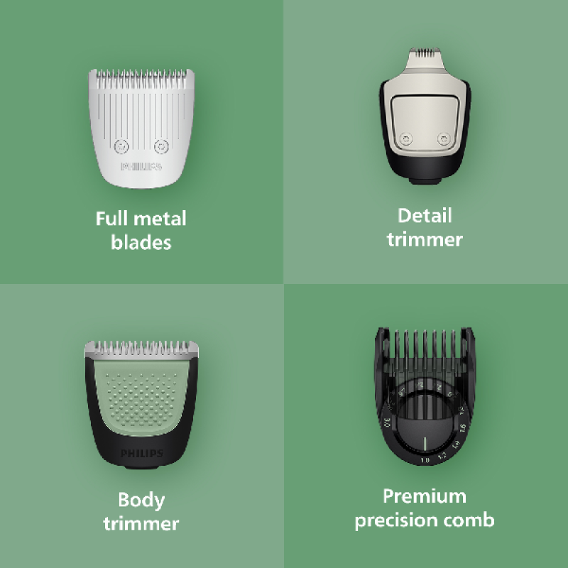 De multigroom Philips MG9531/15 Series 9000 15-in-1 in zwart biedt professionele precisie voor het trimmen en stylen van gezicht, haar en lichaam. Met 15 opzetstukken, waaronder een lichaams- en een neus- en oortrimmer, pas je eenvoudig je look aan. Voor het precisiewerk beschik je dan weer over de bijgeleverde OneBlade. De zelfslijpende stalen mesjes blijven scherp en de afgeronde uiteinden zorgen voor een comfortabele trimbeurt zonder irritatie. De ergonomische handgreep en draadloze werking geven je optimale controle en bewegingsvrijheid. Na gebruik spoel je de opzetstukken eenvoudig af onder de kraan voor snel onderhoud.