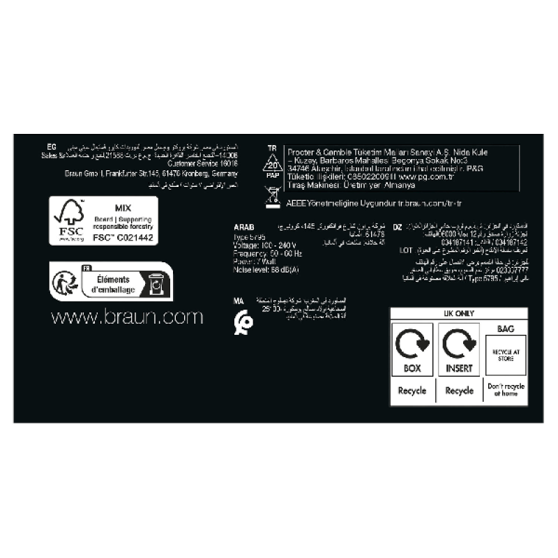 | Aanvullende garantie-informatie | Tot 5 jaar garantie (zie voorwaarden op de Braun website) |