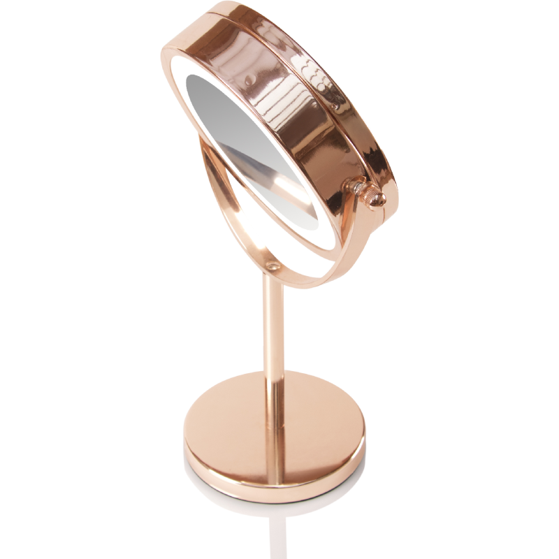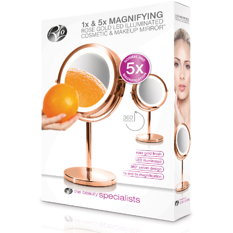 De Rio MMST is tweezijdige spiegel (1x en 5x vergrotende werking) met zachte verlichting. Deze Rio spiegel is het ideale hulpmiddel voor het aanbrengen van make-up en voor andere beauty handelingen die wat extra precisie nodig hebben zoals epileren van je wenkbrauwen en voor het inbrengen van contactlenzen.
