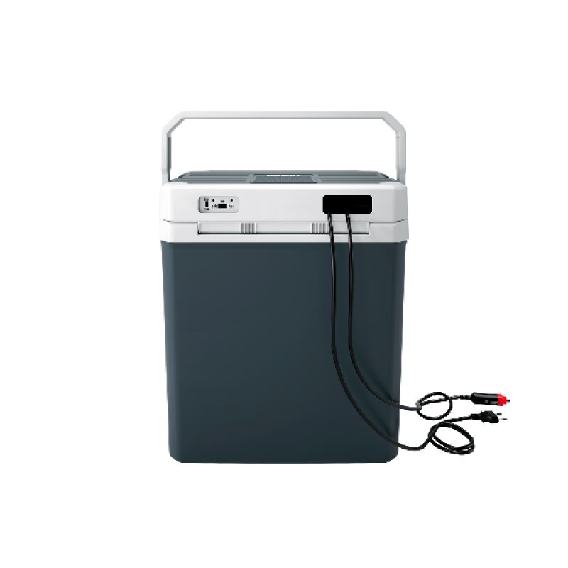 Haal deze grijs-witte Tristar koelbox in huis ter voorbereiding op je zomerse picknickuitjes. Met zijn afmetingen van 42,6 x 31,1 x 43,1 cm heeft deze koelbox een inhoud van 24 liter en houdt hij je eten en drinken lang koel. Dit praktische model is gemakkelijk mee te nemen dankzij het grote, stevige handvat. Bovendien kun je hem aansluiten op de sigarettenaansteker, zodat hij onderweg koude lucht kan verdelen in de box en je eten koel blijft. Bij aankomst kun je genieten van een gekoelde salade en frisdrank of een glas wijn met je vrienden, op het strand of in het park.