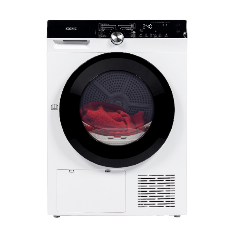De witte KOENIC KTD 9336C warmtepompdroger garandeert een uiterst efficiënt en zuinig droogresultaat. Deze vrijstaande droogkast biedt een ruime trommelcapaciteit aan van 9 kg. Dat maakt hem uiterst geschikt voor het drogen van veel wasgoed in één keer. Hij heeft standaard afmetingen en is eenvoudig vrijstaand te installeren in je bijkeuken of badkamer. Hij is bovendien uitgerust met 14 verschillende programma’s en talloze extra functies voor elk soort wasgoed en stof.