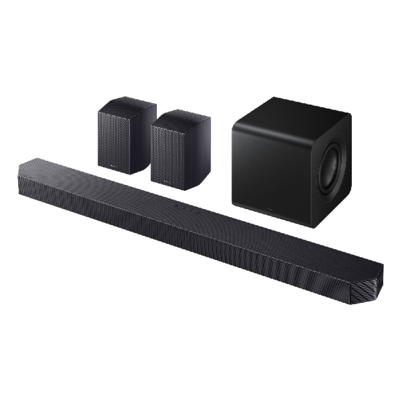 Ervaar een bioscoopervaring in je eigen woonkamer met de Samsung HW-Q930F (2025) Soundbar. Dit 9.1.4-kanaals systeem biedt een indrukwekkend surroundgeluid dankzij de side-firing en corner speakers, samen met draadloze achterspeakers en een krachtige subwoofer. Met Dolby Atmos en DTS:X technologieën wordt het geluid via het plafond naar je toe geprojecteerd voor een meeslepende audio-ervaring. De SpaceFit Sound Pro-technologie past het geluid automatisch aan op de akoestiek van je ruimte. Stream eenvoudig je favoriete muziek via Roon Ready, Google Chromecast, AirPlay2 en Spotify Connect. Het strakke ontwerp maakt deze soundbar een stijlvolle toevoeging aan elk interieur.