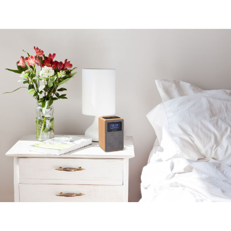 Deze kleine DAB+/FM-radio is overal op zijn plek. De houten behuizing en stoffen luidsprekerbedekking geven iedere kamer een vleugje minimalistische warmte. De ontvangst is kristalhelder en de Gentle Wake-alarmfunctie is perfect voor gasten.
