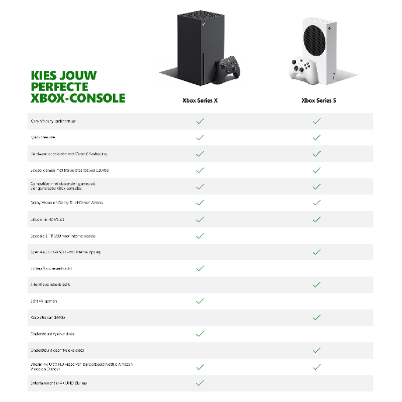 Maak kennis met de nieuwe Xbox Series X, de snelste, krachtigste Xbox ooit. Speel duizenden titels van vier generaties consoles: alle games zien er het best uit en kunnen het best gespeeld worden op de Xbox Series X. De kern van Series X is de Xbox Velocity-architectuur, die een aangepaste SSD combineert met ge‹ntegreerde software voor snellere, gestroomlijnde gameplay met aanzienlijk verminderde belasting. Schakel in een handomdraai naadloos tussen meerdere games met Quick Resume. Verken rijke nieuwe werelden en geniet van de actie als nooit tevoren met de onge‰venaarde 12 teraflops aan ruwe grafische verwerkingskracht. Geniet van 4K-gaming met tot 120 frames per seconde, geavanceerd ruimtelijk 3D-geluid en meer. Ga aan de slag met een bibliotheek van 100 geweldige games, inclusief alle nieuwe Xbox Game Studios-titels op de dag dat ze uitkomen zoals Destiny 2, met Xbox Game Pass Ultimate (lidmaatschap apart verkrijgbaar).