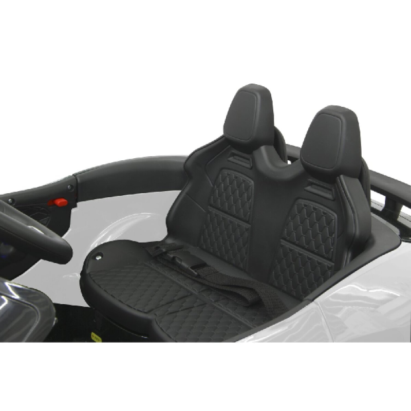 Deze witte Jamara Ride-on Jaguar F-Type RVL JAM-460516 Car van Pirox Toys heeft een gedetailleerd design en is een echte blikvanger. De elektrische kinderauto heeft een multifunctioneel stuur met coole geluiden en een verlicht dashboard met externe audio-aansluiting. Verder maken de led-koplampen, draag- en trekhendel met transportwielen en vele highlights zoals een echte kofferbak hem nog realistischer.