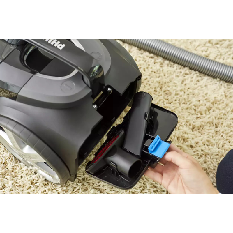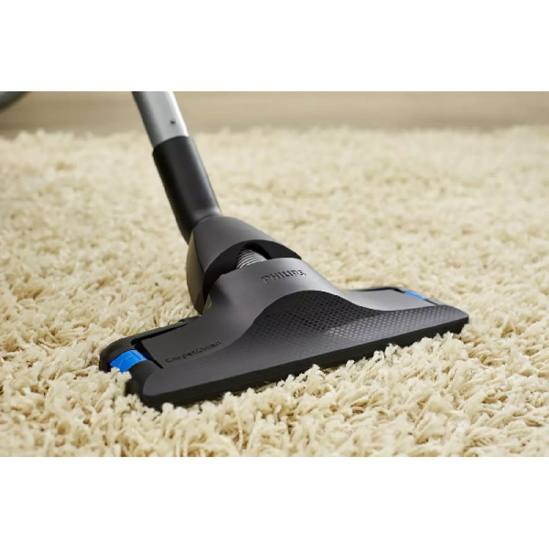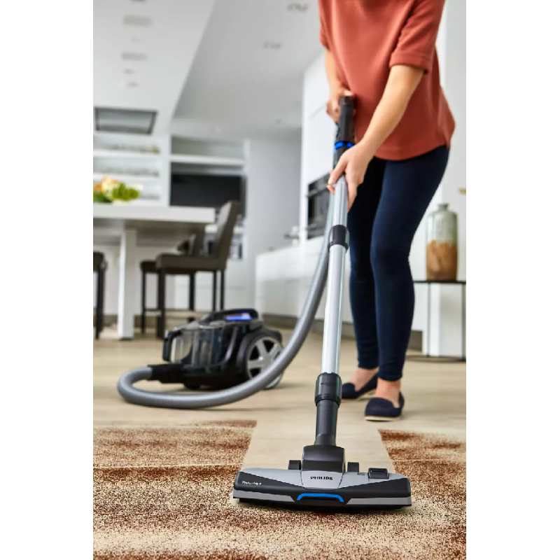 Deze stofzuiger is uitgerust met een aantal praktische hulpstukken voor een optimale reiniging van alle oppervlakken, waaronder een TriActive+ borstel, een CarpetClean borstel, een kierenzuiger, een kleine borstel en een geïntegreerde borstel. De kleine borstel en de kierenzuiger kan je eenvoudig in de stofzuiger opbergen, zodat je ze altijd bij de hand hebt. Met de ingebouwde borstel kan je meubels, vlakke oppervlakken en kussens afstoffen, terwijl de CarpetClean tapijten en vloerkleden grondig reinigt. Ten slotte, de TriActive+ borstel met een brede opening aan de voorkant en borstels aan beide zijden, voert 3 reinigingsacties tegelijk uit voor onberispelijke resultaten op harde vloeren.