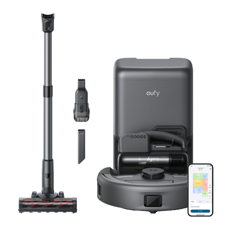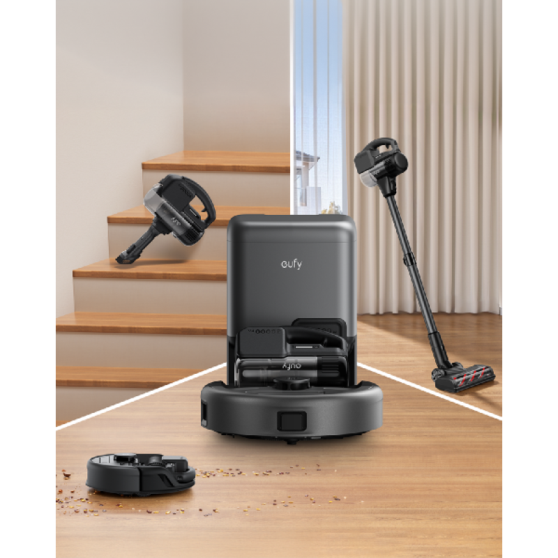 De E20 grijze stofzuiger van EUFY valt op door zijn multifunctionele FlexiONE 3-in-1 ontwerp. Je transformeert hem in een handomdraai in een robotstofzuiger, of in een kruimelvanger of staande stofzuiger, afhankelijk van je behoefte. Of je nu vloeren, meubels of moeilijk bereikbare hoekjes schoonmaakt, deze 3-in-1 robotstofzuiger is klaar voor elke uitdaging. Dankzij de veelzijdigheid maak je in een mum van tijd en moeiteloos je huis opnieuw schoon.