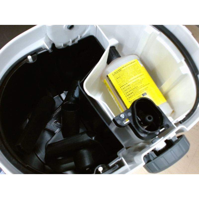 Deze ronde stofzuiger heeft 4 stevige wielen die gemakkelijk in alle richtingen draaien om je door het huis te volgen. Hij heeft een afneembare schoonwatertank van 4 liter die je er gemakkelijk uit kunt halen om bij te vullen. Vuil water wordt afgevoerd naar het hoofdcompartiment van 4 liter, dat ook stof kan bevatten en gemakkelijk te legen is door het deksel te verwijderen. Met een vermogen van 1000 watt zuigt hij verdund vuil tot diep in de vezels op en garandeert hij een minimaal restvocht voor een snelle droging van textieloppervlakken.
