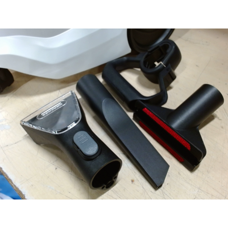 Dankzij de reeks meegeleverde praktische hulpstukken, maakt deze veelzijdige vloerreiniger alle oppervlakken grondig schoon. Alle accessoires zijn altijd binnen handbereik omdat je berg ze gemakkelijk op het apparaat op. Om vlekken te verwijderen heb je 2 spleetmondstuk van 22.7 cm en 8.8 cm ter beschikking. Hiermee kun je de schoonmaakoplossing opspuiten en daarna het opgeloste vuil opzuigen. Om droog stof op te zuigen gebruik je de 2 andere borstels één voor harde vloeren en één voor tapijten. Dankzij de zuigslang van 2 meter en de telescopische buis bereik je eenvoudig elke hoek van je huis.