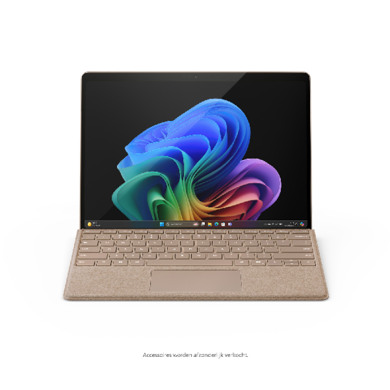 De goudkleurige Microsoft Surface Pro 11 laptop staat garant voor een flexibele werking met handige 2-in-1 functionaliteit. Dankzij geavanceerde componenten, nieuwe exclusieve functies die je AI-ervaring omhoog tillen, en uitstekende aanpasbare mogelijkheden heb je een krachtig apparaat steeds bij de hand. Zo steunt deze Microsoft-laptop op de rekenkracht van zijn 10-kernige Qualcomm Snapdragon X PlusX1P-64-100-processor, die maximale kloksnelheden tot 3,4 GHz haalt en snelle prestaties levert. Gecombineerd met 16 GB RAM-geheugen draait hij moeiteloos meerdere programma’s en wordt multitasken kinderspel. Op het 13 inch (33 cm) PixelSense-touchscreen bekijk je content in verbluffende 2,8K-resolutie. Je kunt bovendien overschakelen naar tablet-modus en zelfs meerdere monitoren aansluiten, de laptop is namelijk voorzien van 2 USB-C-poorten. Alle programma’s, documenten en ontwerpen bewaar je op het interne geheugen van 512 GB. Tot slot beschikt dit apparaat over een knappe batterij die de hele dag meegaat, en profiteer je van snelle draadloze connectiviteit dankzij de ondersteuning voor wifi7 en bluetooth.