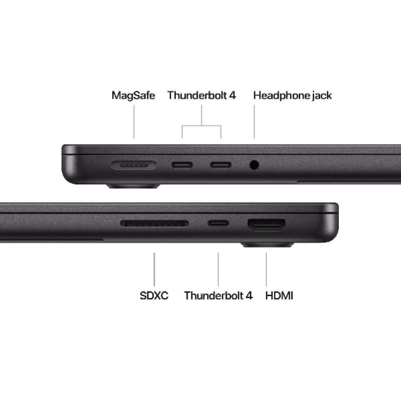 Het 14,2 inch Liquid Retina XDR display heeft een piekhelderheid van 1600 nits, een constante helderheid tot 1000 nits en een contrastverhouding van 1.000.000:1. Je bent bovendien altijd perfect in beeld en goed verstaanbaar dankzij de 12MP Center Stage-camera, drie microfoons van studiokwaliteit en zes speakers met ruimtelijke audio en ondersteuning voor Dolby Atmos.