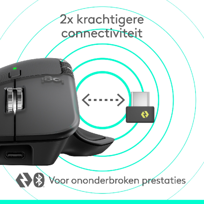 De draadloze Logitech MX Master 4 in graphite biedt meeslepende controle en voelbare precisie met haptische feedback. Zo voel je trillingen tijdens het scrollen, het klikken en navigeren, allemaal in te stellen via Logi Options+. De muis heeft 8 programmeerbare knoppen, inclusief het duimwiel en een bewegingstoets voor betere workflows. Dankzij de 8K DPI Darkfield-sensor beweeg je hem bovendien op elk oppervlak naadloos, en het DPI is instelbaar tussen 200 tot 8.000. Daarbovenop bespaar je tot 33% aan tijd bij repetitieve taken dankzij Action Ring-snelkoppelingen, en met een batterijduur tot 70 dagen hoef je hem niet vaak op te laden. Je koppelt de muis in een handomdraai via Bluetooth 5.1 en verder heeft hij een Logi Bolt USB-C-dongle die compatibel is met Windows, macOS, Linux, ChromeOS en iPadOS, en Android-apparaten.