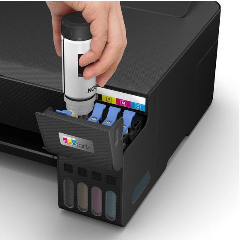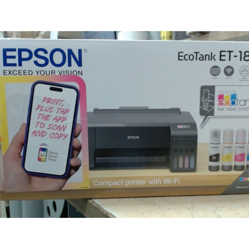 De Epson EcoTank ET-1810 in zwarte uitvoering is een zeer lichte en compacte inkjet kleurenprinter. De printer drukt zowel in zwart-wit als kleur documenten zeer snel af en bevat een geavanceerd bijvulsysteem. Een draadloze verbinding garandeert je bovendien een vlotte bediening met je smartphone, tablet of laptop.