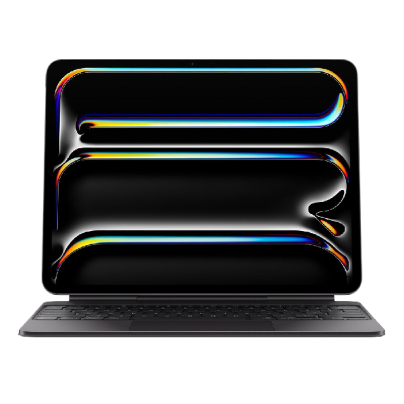 Deze zwarte Magic Keyboard beschermhoes met AZERTY-toetsenbord is door Apple ontworpen om je iPad Pro13’’ M4 optimaal te beschermen en te gebruiken. Hij past perfect op je iPad Pro en is eenvoudig te installeren dankzij de magnetische contour. Het toetsenbord met achtergrond­verlichting biedt uitzonderlijk typcomfort en bevat een rij van 14 praktische functietoetsen voor snelle toegang tot bepaalde instellingen zoals schermhelderheid en volume. Het geïntegreerde glazen trackpad, met zijn elegante, lichtgewicht ontwerp, heeft een aluminium palmsteun en biedt uitstekende haptische feedback. Het aluminium scharnier is voorzien van een USB-C-aansluiting voor het opladen van je iPad. Tot slot is de case dankzij het zwevende dun, licht en traploos design, verstelbaar voor de perfecte kijkhoek.