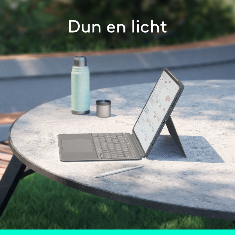 Deze grijze hoes met Touch-toetsenbord van Logitech is geschikt voor de 13-inch iPad Air. Hij maakt je tablet nog veelzijdiger en praktischer, zodat je kunt tekenen, schrijven, lezen en je favoriete content bekijken terwijl je hem beschermt tegen krassen. Het QWERTY-toetsenbord is afneembaar en heeft een Multi-Touch touchpad. De flap van de hoes vouwt naar beneden zodat je je tablet er loodrecht op kunt plaatsen.
