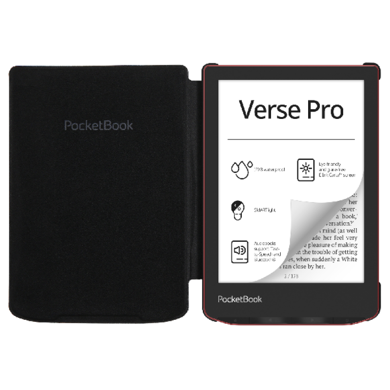 De Verse Shell beschermhoes van Pocketbook in zwart beschermt je e-reader tegen krassen. Deze hoes is gemaakt van polyester en nylon en is compatibel met de Verse en Verse Po e-readers. Hij bedekt alle zijden van je tablet en heeft een nauwkeurige uitsparing voor de USB-C-oplaadpoort. Dankzij de Auto-wake-functie hoef je alleen maar de klep van de hoes te openen om het scherm in te schakelen en deze weer te sluiten om de e-reader in de slaapstand te zetten.