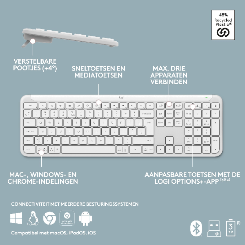 Batterijduur 36 maanden (toetsenbord) / 24 maanden (muis)