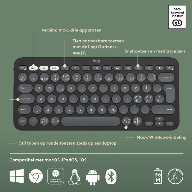 LOGITECH Draadloos toetsenbord Pebble Keys 2 K380s AZERTY Zwart (920-011803)