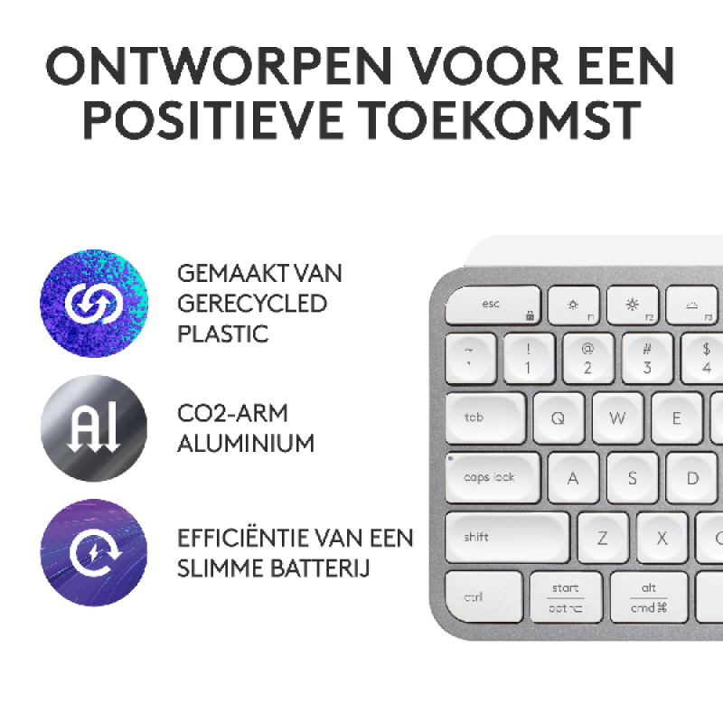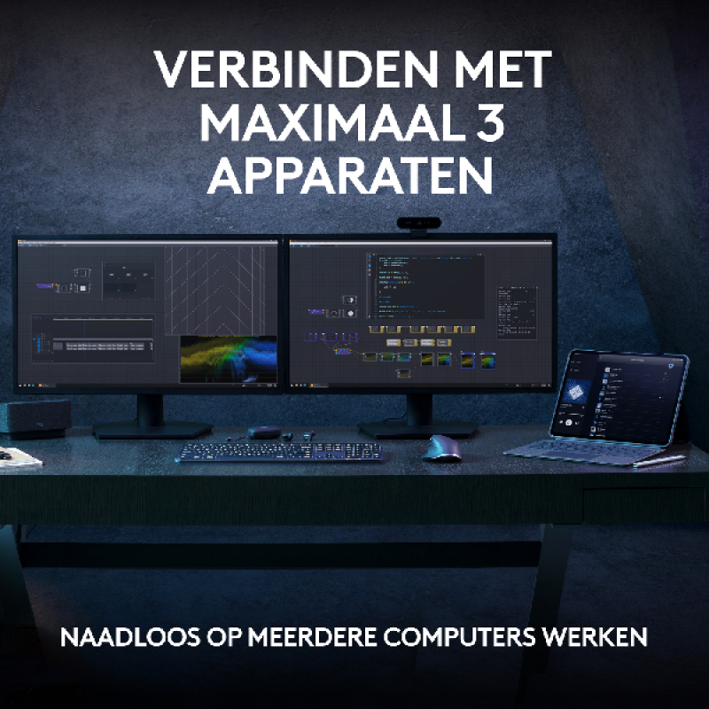 Het grijze Logitech MX Keys S draadloze toetsenbord laat je een nieuw niveau van flow beleven dankzij de slimme verlichting en programmeerbare toetsen. Bovendien zijn de concave toetsen ergonomisch, ze verlagen de kans op tikfouten en produceren minder geluid.