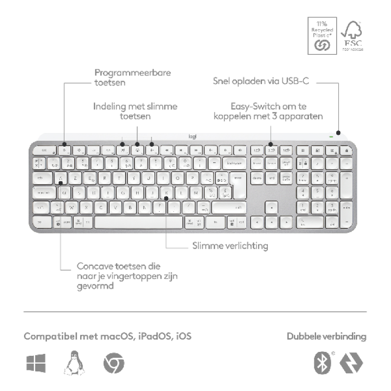 LOGITECH Draadloos toetsenbord MX Keys S AZERTY Pale Grey (920-011569)