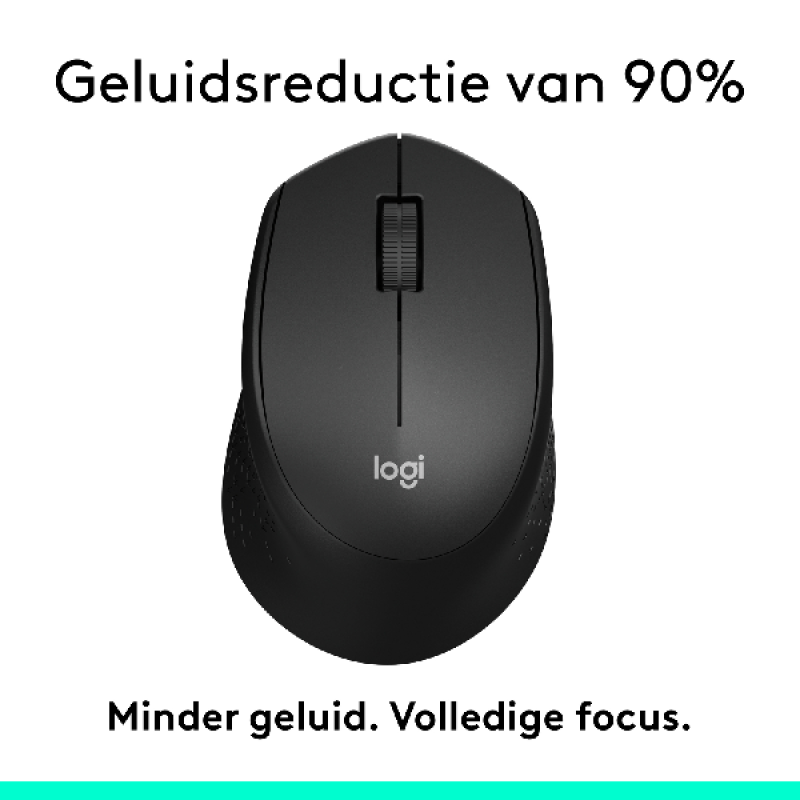 *Vergelijking van geluidsniveau met Logitech M170. Gemeten door een onafhankelijk laboratorium en geverifieerd door Quiet Mark.